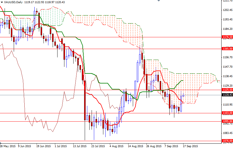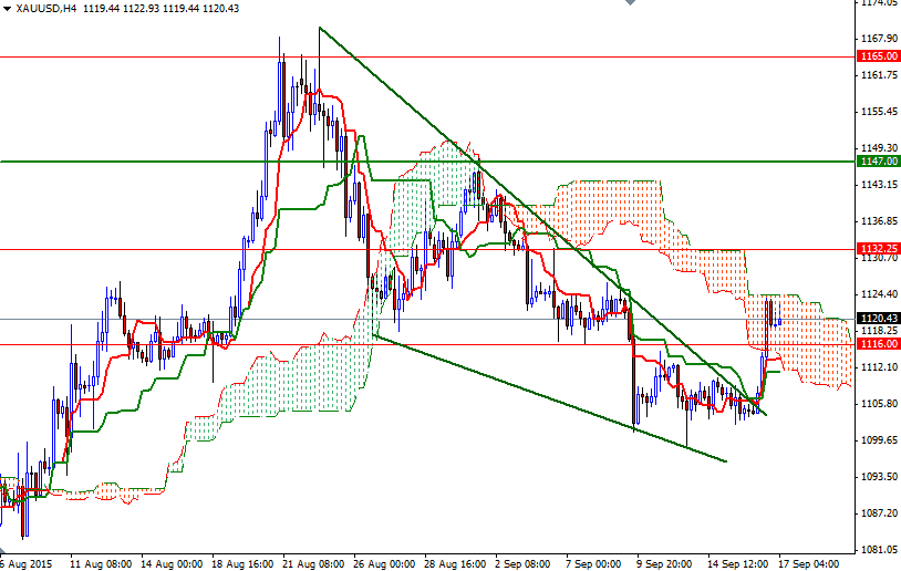 Los traders están especulando que existe una clara posibilidad de que la Reserva Federal podría no subir los tipos de interés hasta diciembre. Aunque este punto de vista ayude a los precios del oro, las ganancias en los mercados de valores reducirán la demanda de diversificación de refugio seguro. El mercado extendió sus ganancias y probó la resistencia en alrededor del nivel de 1125,50 después de que el par XAU/USD salió de la cuña descendente y subió encima del primer obstáculo de los 1116. No obstante, los precios probablemente tenderán hacia la consolidación, mientras los traders aguardan el resultado de la reunión de política monetaria de la Reserva Federal.