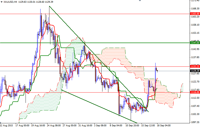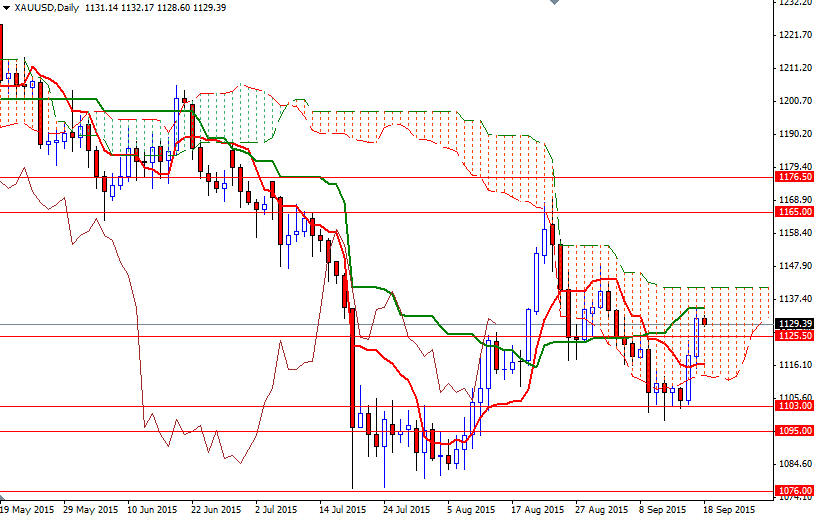 El rally de ayer empujó al par XAU/USD por encima de las nubes Ichimoku en el marco de tiempo de 4 horas. También tenemos un cruce alcista Tenkan-sen (media móvil de nueve periodo, línea roja) - Kijun-sen (media móvil de 26 períodos, línea verde). El XAU/USD actualmente ronda el nivel de 1129 mientras el mercado trata de digerir las recientes ganancias. Desde un punto de vista intradía, voy a estar vigilando la zona de resistencia de 1127/5.50, que rompimos ayer.