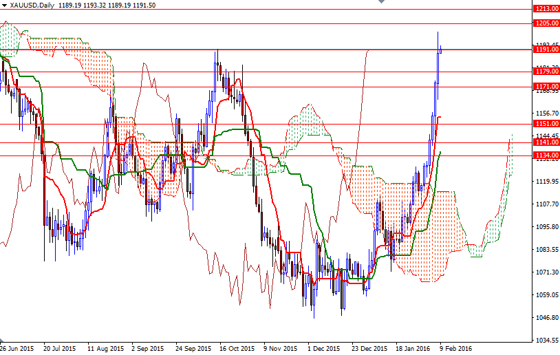 El precio del oro terminó la sesión del lunes subiendo 16,31 dólares, extendiendo las ganancias de la semana pasada a medida que la presión sobre los mercados de valores mundiales aumentó la demanda por el metal precioso. El par XAU/USD cotizó tan alto como a 1200,80 dólares la onza después de que rebasar una resistencia clave en los 1179 dólares proporcionó un impulso adicional, como se esperaba. El mercado se está moviendo en un rango estrecho en el comercio asiático ya que los inversores adoptaron una postura de cautela por delante del testimonio de Janet Yellen, presidenta de la Reserva Federal, ante el Congreso. Yellen hablará hoy ante el Comité de Servicios Financieros.