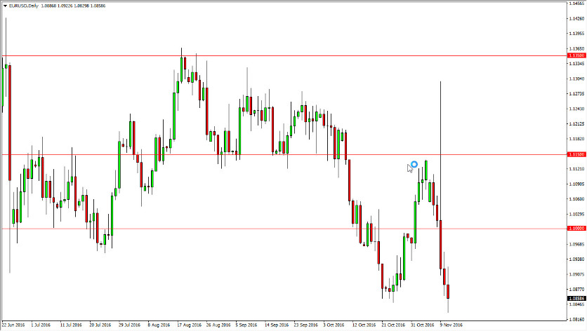 El par EUR/USD mostró mucha volatilidad el viernes, a medida que nos acercábamos al nivel de soporte de 1,08. Creo que una vez que rompamos por debajo de aquí, el mercado tendrá el camino libre para caer a 1,05 y tal vez incluso más bajo que eso. El euro está en problemas, tras el cambio masivo después de la sorpresiva elección de Donald Trump del miércoles. Esta es probablemente una de las estrellas fugaces más bajistas que he visto y, como resultado, no me sorprendería en absoluto que sigamos bajando. Con esto en mente, creo que la presión bajista continúa y que es sólo cuestión de tiempo antes de que podamos romper por debajo de los 1,08. En última instancia, creo que el mercado pondrá a prueba el nivel de 1,05 y que tendremos que reevaluar todo lo que tenemos. En el corto plazo, creo que los rallies serán vendidos en las primeras señales de debilidad.
