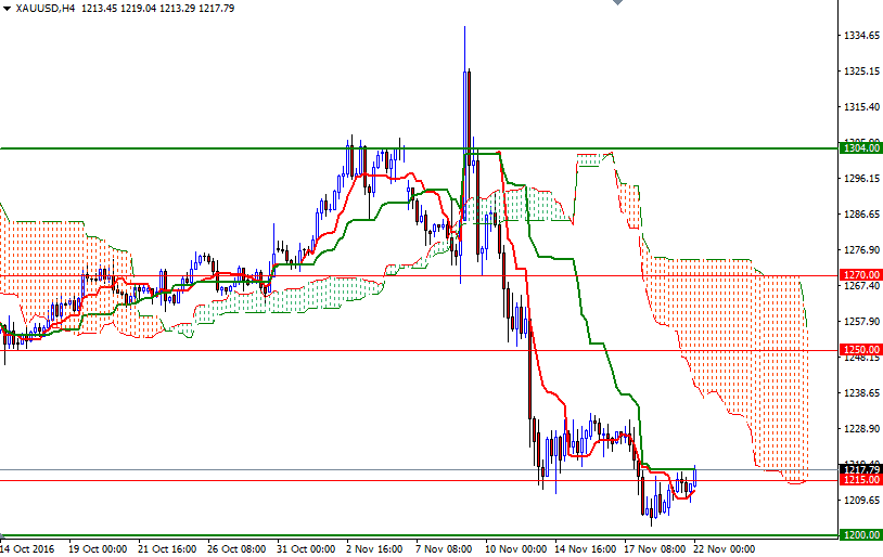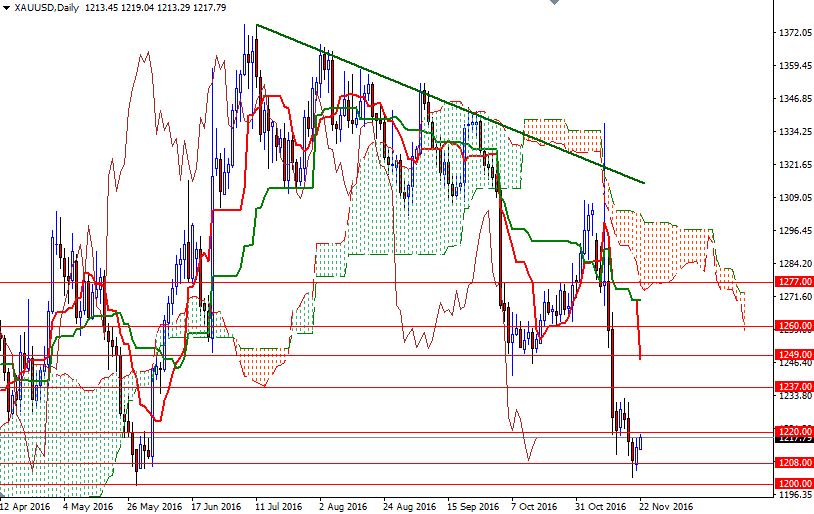 El precio del oro subió 6,36 dólares el lunes, recuperando parte de las pérdidas de la semana pasada, ya que el dólar estadounidense retrocedió tras subir 10 días consecutivos. Ayer los precios cayeron inicialmente, pero encontraron apoyo en torno a los 1206, que se convirtió en el mínimo del día y también provocó algún tipo de movimiento alcista. El par XAU/USD está cotizando actualmente a 1217,79 dólares, ligeramente por encima del precio de apertura de 1213,45 dólares.