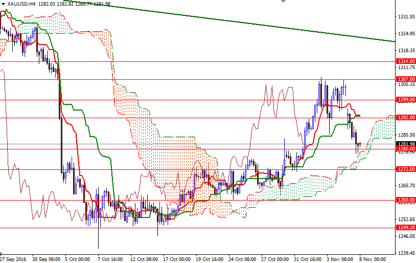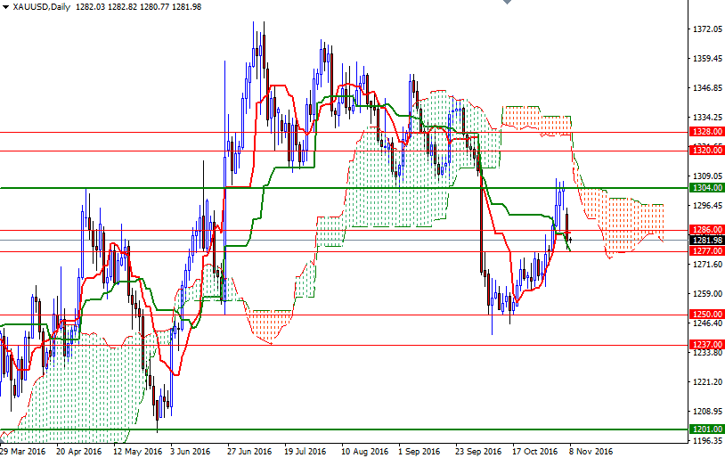 El precio del oro cerró la sesión del lunes perdiendo un 0,89%, u 11,57 dólares, para ubicarse a 1281,31 dólares la onza, mientras los inversores regresaron a las acciones estadounidenses y el dólar se fortaleció después de que el FBI dijo que no había encontrado nuevas pruebas contra Hillary Clinton. El par XAU/USD había cotizado tan alto como a 1307,91 dólares la semana pasada debido a la compra de refugio seguro cuando Donald Trump ganó terreno contra Hillary Clinton en las encuestas de intención de voto. Aparte de las señales de estabilización en los mercados, los inversores están cada vez más seguros de que la Reserva Federal aumentará los tipos de interés en su próxima reunión de política monetaria.