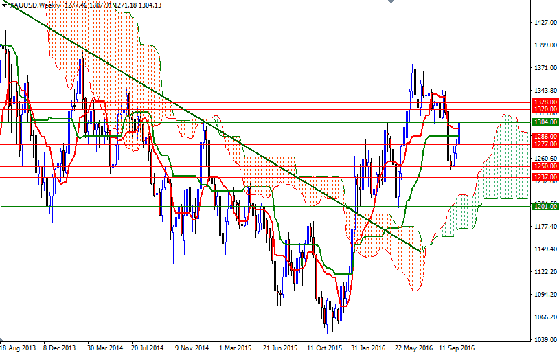 La Reserva Federal mantuvo los tipos de interés sin cambios la semana pasada, pero señaló que podría aumentar los costes de endeudamiento en diciembre si la economía sigue en la pista. Aunque el reciente lote de datos económicos apoya las expectativas de subida de tipos el próximo mes, el foco sigue siendo una carrera presidencial a la Casa Blanca cada vez más incierta. Técnicamente hablando, los gráficos semanales y de 4 horas son alcistas ya que el par XAU/USD está cotizando por encima de las nubes Ichimoku. Además de eso, las líneas Tenkan-Sen (media móvil de nueve periodos, línea roja) y Kijun-Sen (media móvil de veintiséis periodos, línea verde) están alineadas positivamente y la Chikou-span (precio de cierre de 26 períodos, línea marrón) está sobre los precios en ambos gráficos.