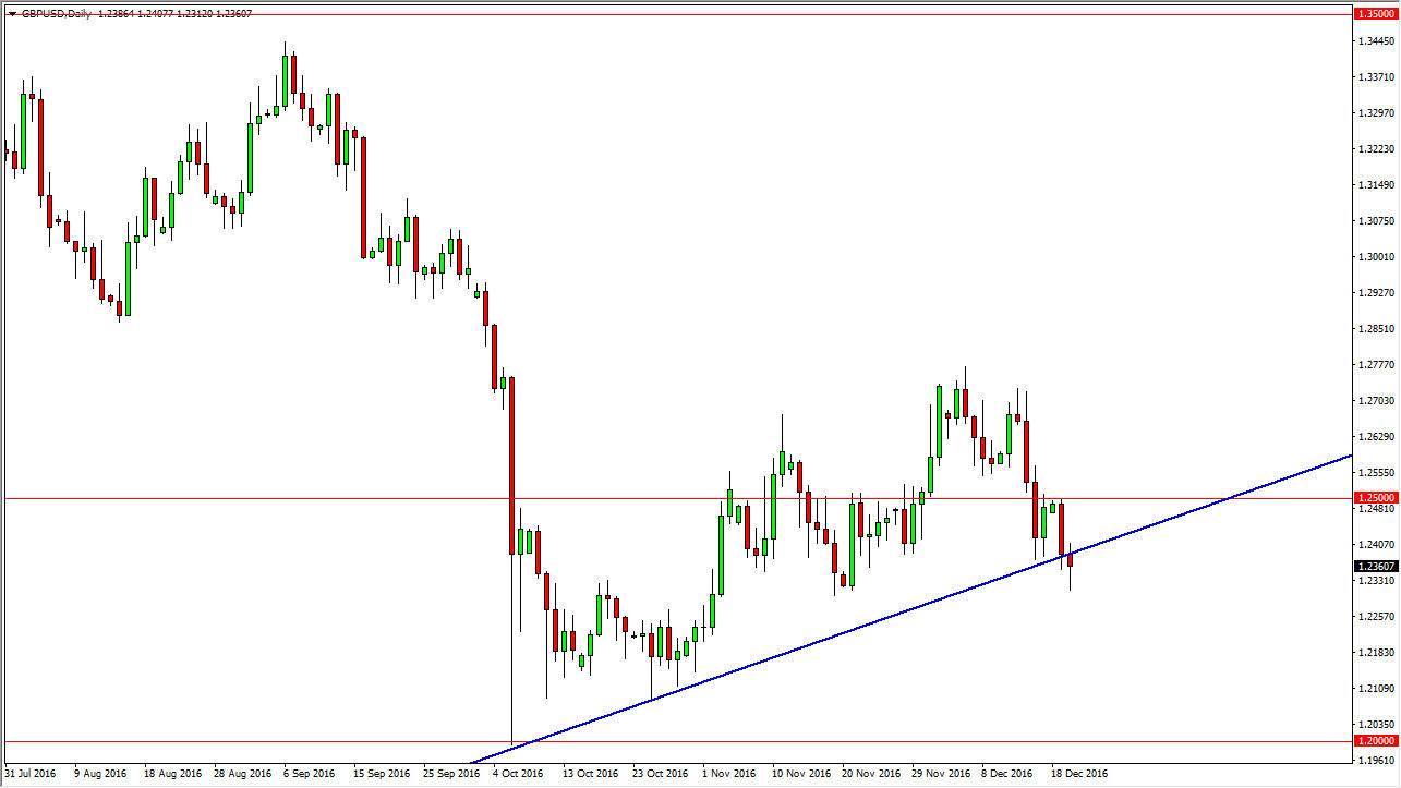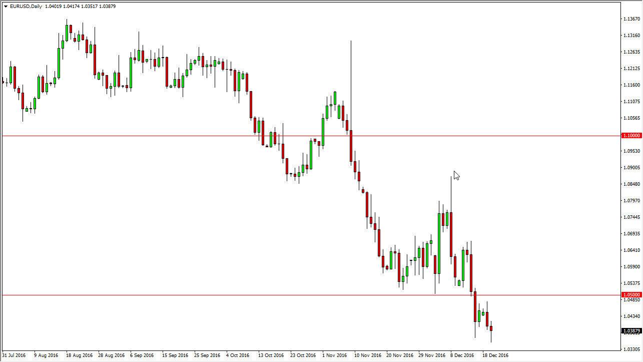 El euro cayó durante la jornada del martes, alcanzando nuevos mínimos. De hecho, llegamos a un mínimo de 14 años en cierto punto, pero el par rebotó lo suficiente como para formar un martillo. Ese martillo debería ofrecer una oportunidad de compra a corto plazo, pero francamente estoy más interesado en vender este par cerca del nivel de 1,05, donde deberíamos ver una cantidad significativa de presión bajista. Una vela exhaustiva sería una buena oportunidad de venta, ya que creo que finalmente llegaremos hacia el nivel de paridad. En última instancia, este es un mercado que creo que seguirá sufriendo presión bajista no sólo ahora, sino a principios de 2017. En las próximas dos semanas, probablemente veremos un mercado tranquilo, pero sigo pensando que en general tendremos un sesgo bajista.