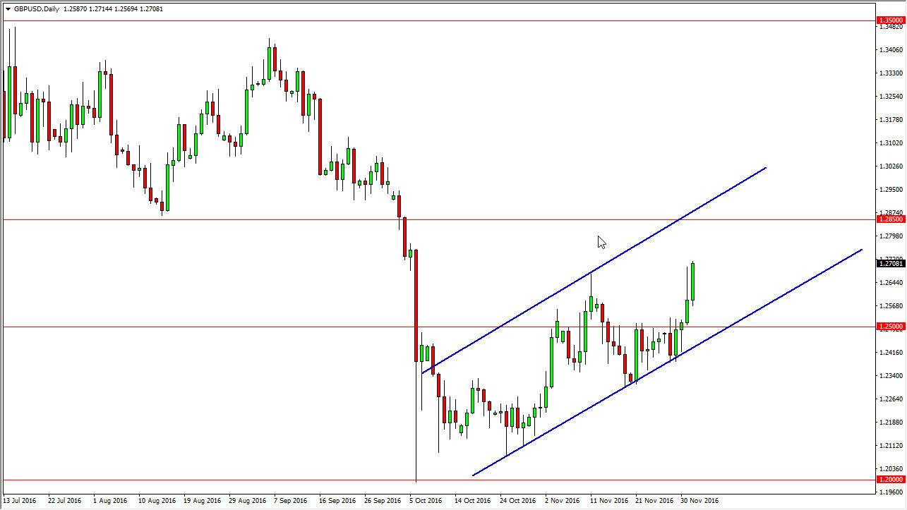 La libra esterlina rompió al alza durante la jornada del viernes, rompiendo la parte superior de la estrella fugaz de la sesión del jueves. Este es un movimiento alcista y por eso creo que probablemente vamos a tratar de abrirnos camino hacia la zona de 1,2850. Es ahí donde espero ver una gran cantidad de presión de venta, por lo que creo que es sólo una cuestión de tiempo antes de que podamos empezar a vender de nuevo sobre la base de los gráficos de largo plazo. Mientras tanto, esta parece una buena tendencia alcista a corto plazo que debería continuar. La libra esterlina necesitaba darse este respiro desde hace tiempo, así que francamente esto no me sorprende.