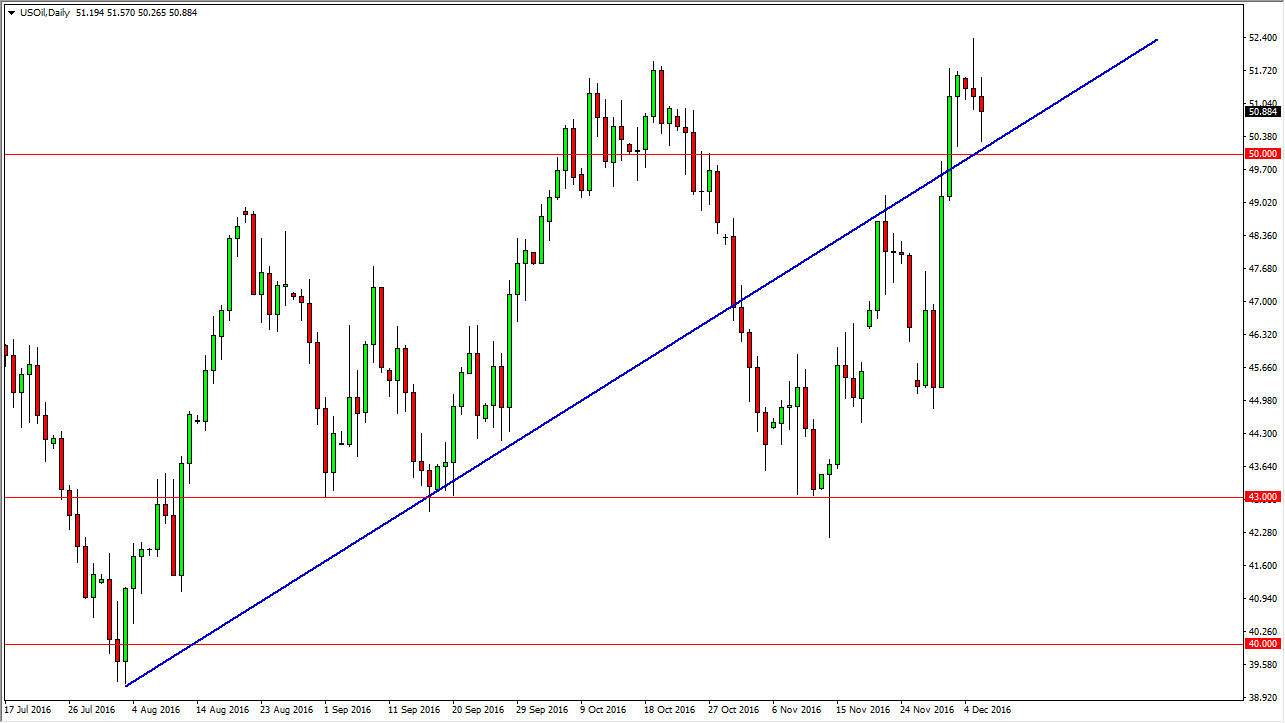 El mercado del petróleo crudo WTI cayó durante la mayor parte de la sesión del martes, pero encontró suficiente apoyo en la línea de tendencia alcista anterior y, lo que es más importante, en el nivel de 50 dólares, y se dio la vuelta para formar un martillo. Creo que hoy será una jornada crucial cuando se trata del mercado del crudo WTI, ya que tenemos el dato semanal de inventarios de crudo. En última instancia, se espera una caída de 1,2 millones de barriles en el inventario. Si vemos un número mayor, eso señalará una recuperación de la demanda y podría ser razón suficiente para que podamos seguir de largo durante mucho tiempo. Sin embargo, si vemos una acumulación de inventario mayor que la esperada, el mercado probablemente romperá por debajo del nivel de 50 dólares. En un cierre diario por debajo de ahí, creo que tendríamos una buena oportunidad para empezar a vender una vez más.