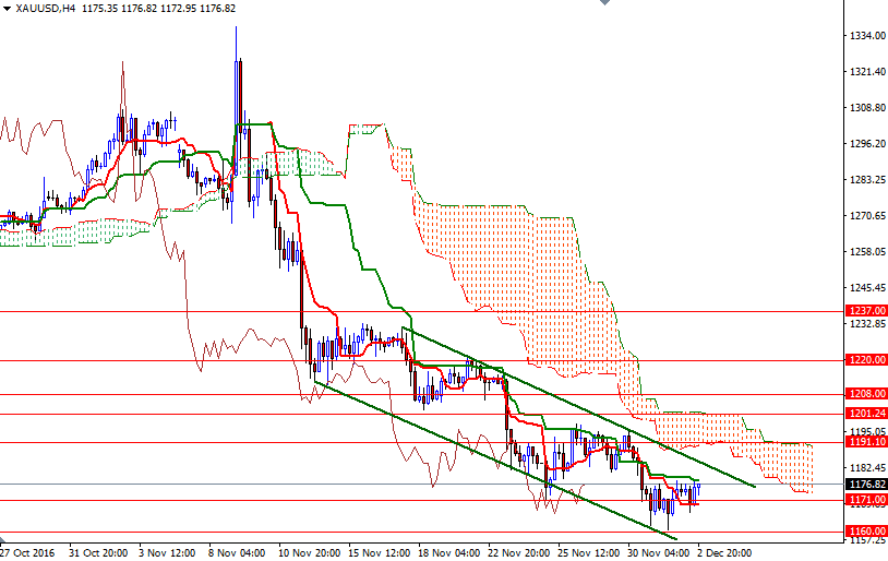 Parece que el precio del oro seguirá luchando contra una serie de factores bajistas, como la tendencia alcista de las acciones, un dólar más fuerte y la perspectiva de nuevos aumentos de tipos en 2017. Los últimos datos de la Commodity Futures Trading Commission (CFTC) mostraron que los traders especulativos de la Bolsa Mercantil de Chicago redujeron sus posiciones largas netas en oro a 151.570 contratos desde los 167.085 de una semana antes. Desde un punto de vista técnico, cotizar por debajo de las nubes de Ichimoku en los marcos diarios y de 4 horas sugiere que los precios del oro son vulnerables a la baja. El canal descendente que el mercado ha estado siguiendo puede contener los precios y arrastrar los precios hacia los 1148/5. Sin embargo, es probable que haya un apoyo menor en alrededor de 1169, seguido por un apoyo mayor en la zona de 1165/0. En otras palabras, tenemos que ponernos por debajo de allí para seguir cayendo. En su camino a la baja, podemos encontrar apoyo en la zona de 1154/3 dólares.