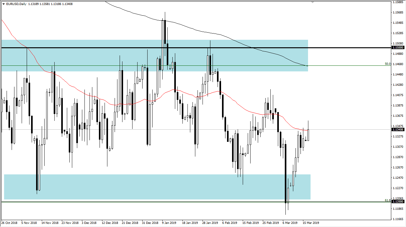 El euro subió durante la mayor parte de la sesión del lunes, superando el nivel de 1,1350 y la EMA de 50 días en el proceso. Sin embargo, hemos cedido parte de las ganancias y parece que posiblemente podamos retroceder un poco. Sin embargo, a largo plazo, la mayor lucha que tenemos ahora es el hecho de que estamos en medio de la consolidación general que comienza en el nivel de 1,12 y llega al nivel de 1,15. Creo que, si podemos romper por encima de la parte superior de la vela de la sesión del lunes, probablemente apuntaremos al nivel de 1,14. De lo contrario, probablemente encontraremos compradores más cerca del nivel de 1,1250, que debería ser el comienzo de un soporte significativo.