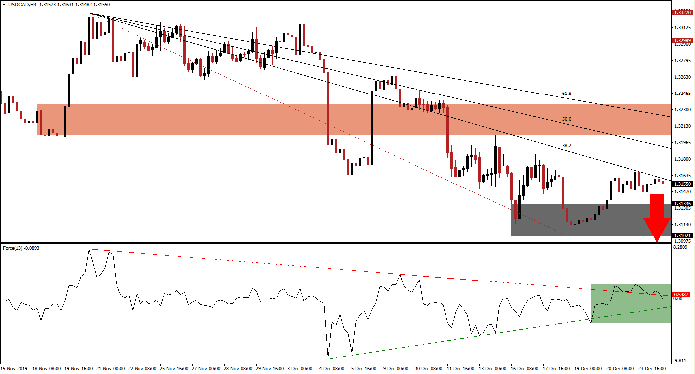 El impulso bajista se está expandiendo una vez más, luego de que el USD/CAD terminara de quebrar su zona de soporte. El avance se vio frenado por el descenso del nivel de resistencia de los Abanico de Fibonacci 38.2. Los datos económicos de los EEUU siguieron pintando un escenario más débil que lo que se cotiza en los mercados. La Reserva Federal de los Estados Unidos podría verse obligada a realizar más recortes de los tipos de interés en 2020, después de haber declarado que se espera que la política monetaria se mantenga sin cambios hasta 2021. Puede obtener más información sobre el Abanico de Retracción de Fibonacci aquí.