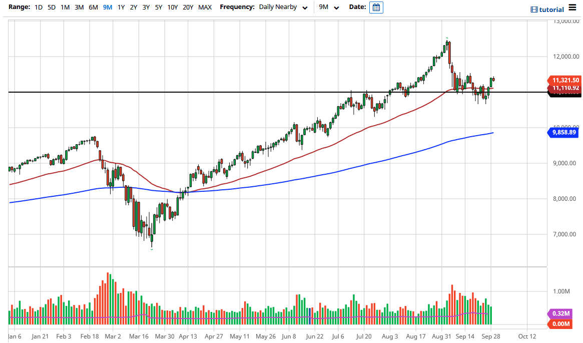 El NASDAQ 100 trató de buscar un rally durante la sesión trading del martes, pero tuvo un pullback desde el nivel de 11.450. Habiendo dicho esto, parece que el mercado podría tener un pequeño pullback adicional, pero también anticipo que hay mucho soporte por debajo. La EMA de 50 días está actualmente plana y justo por encima del nivel de 11.000, un área que es un soporte obvio desde un punto de vista psicológico. Después de todo, a los traders les gustan los números grandes, redondos y psicológicamente significativos, y los usan para entrar y salir de los mercados.