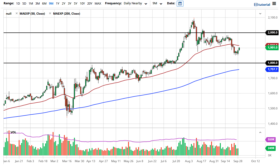 Creo que en última instancia, el mercado del Oro va mucho más alto, y creo que lograremos un break por encima del nivel de US$ 2000. Una vez que lo hagamos, eso seguramente impulsará la tendencia al alza a toda velocidad, y en última instancia este es un mercado que eventualmente llegará, pero obviamente tenemos mucho trabajo por hacer. En definitiva, el mercado del Oro probablemente seguirá siendo levantado por los bancos centrales de todo el mundo y por supuesto el comercio de seguridad, así que creo que en este punto es simplemente una cuestión de encontrar valor. Los traders que entraron al nivel de US$ 1850 han encontrado un poco de valor, pero creo que tendrán múltiples oportunidades en el futuro. No es hasta que suframos un breakdown por debajo de los 200 días de la EMA en un cierre diario que consideraría la tendencia ascendente del Oro muerta y desaparecida. Honestamente, hay muchas razones para pensar que los metales preciosos continuarán ganando a largo plazo, así que un poco de paciencia puede llegar muy lejos.