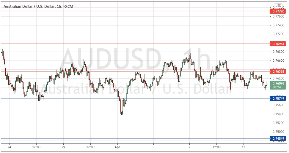 Las señales del jueves pasado del AUD/USD no se activaron, ya que la acción del precio a bullish tuvo lugar unos pocos pips por debajo del nivel de soporte identificado en 0.7597.