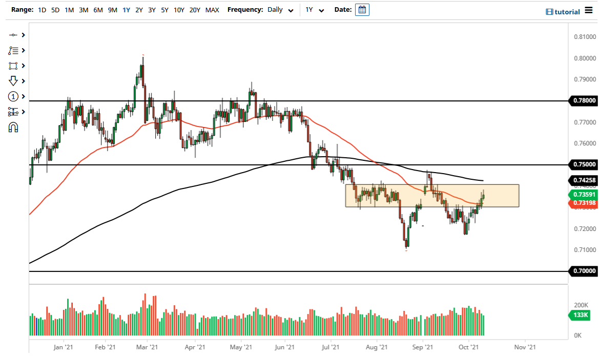 El precio del AUD/USD se mantuvo estable, ya que los inversores valoraron un fuerte repunte de la economía Australiana. El par subió hasta un máximo de 0.7385, lo que supuso un 2.65% por encima del nivel más bajo de septiembre.