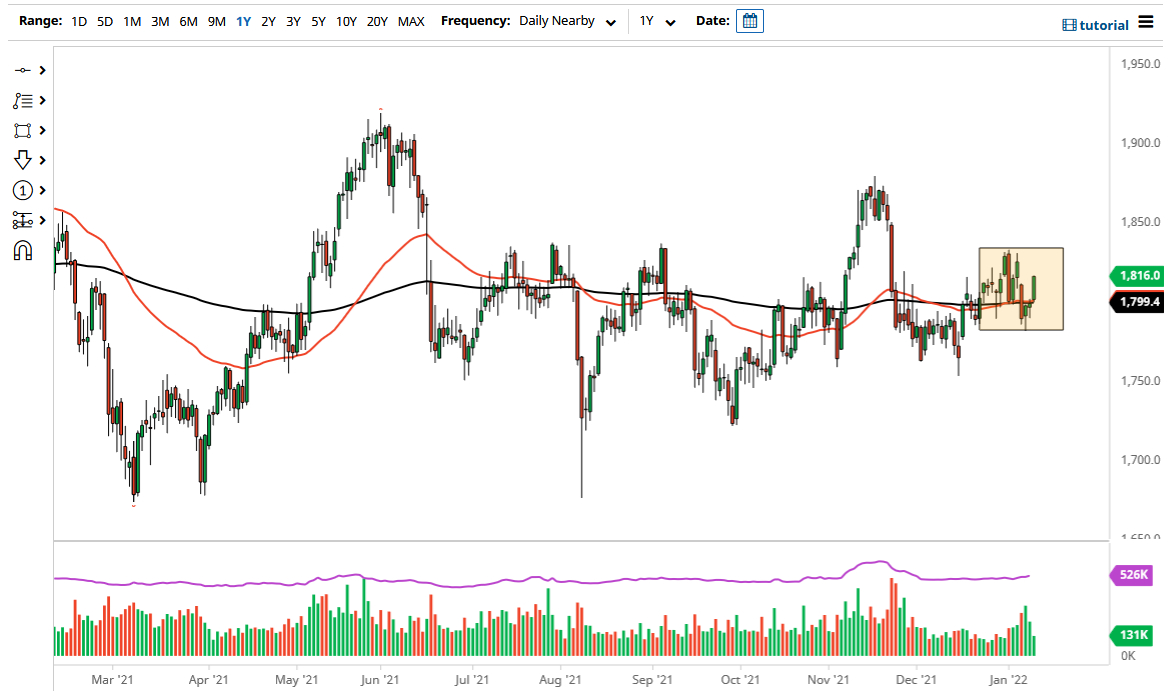 Los mercados del Oro han repuntado significativamente durante la sesión de trading del martes para mostrar signos de fortaleza de nuevo, en lo que podría considerarse una zona de consolidación potencial desde un punto de vista más amplio. Lo que quiero decir con esto es que hemos rebotado desde mínimos significativos cerca del nivel de 1770 dólares, y por supuesto hemos visto una cantidad significativa de resistencia cerca del nivel de 1830 dólares. Si observamos el gráfico, nos da a entender que quizás tengamos un rango al que probablemente nos aferremos, lo que, por supuesto, vale la pena tener en cuenta.