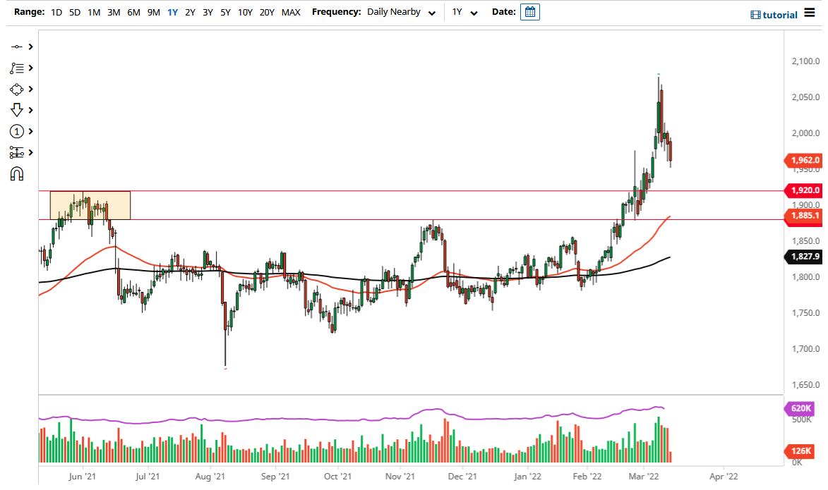 Mirando este gráfico, si rompemos a la baja (breakdown) por debajo de $1920, entonces es probable que el mercado pueda tener una ruptura a la baja (breakdown). La EMA de 50 días está llegando a los máximos que marcó el nivel de $1920, y por lo tanto creo que mucha gente estaría prestando mucha atención a ello.