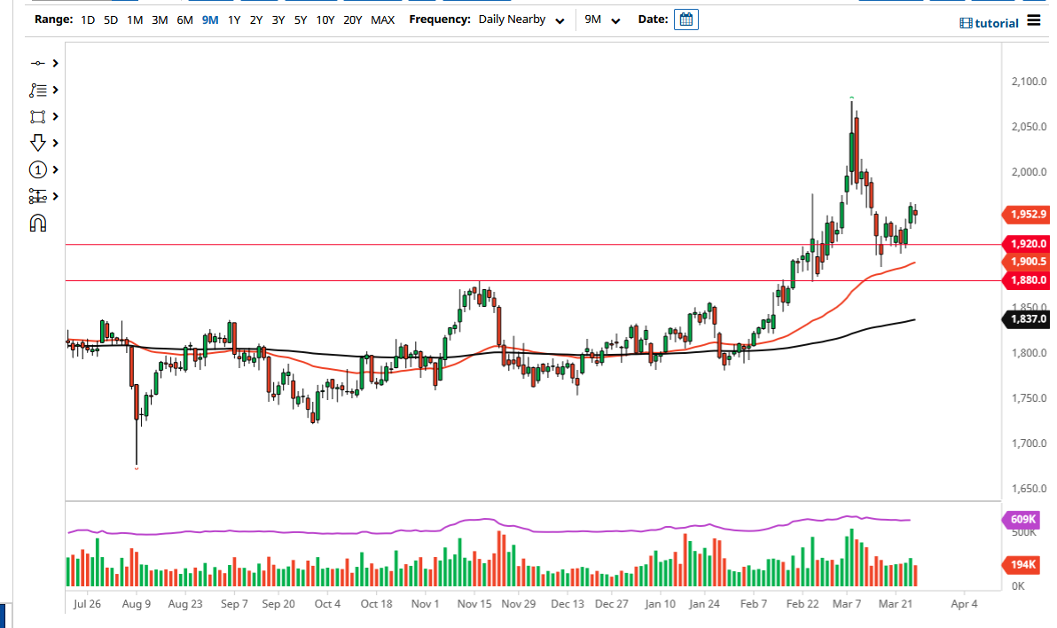 El mercado tiene una cantidad significativa de soporte por debajo que se extiende hasta el nivel de $1920, que comienza la siguiente zona de soporte de trading importante. Esa zona se abre para un movimiento hacia el nivel de $1880, donde considero que la tendencia del mercado está completamente respaldada. Un movimiento por debajo de ese nivel sería muy catastrófico y posiblemente representaría algún tipo de aumento masivo del Dólar estadounidense.