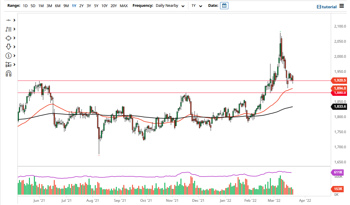 La EMA de 50 días se encuentra justo debajo y se está curvando hacia arriba. Esto sugiere que el impulso es todavía muy alcista, y por lo tanto debe ser mantenido en la parte posterior de su mente. El nivel de $1880 por debajo es la parte inferior del rango de soporte, por lo que no es realmente hasta que rompemos por debajo de allí que me volvería negativo. Considero que en este punto, es muy probable que los mercados sigan viendo esta zona en general como importante desde un punto de vista a largo plazo.