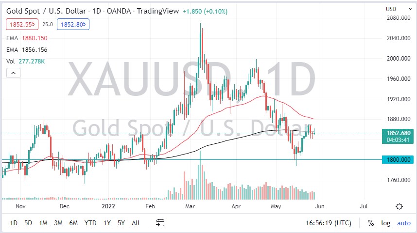 La formación de un martillo seguido de una estrella fugaz sugiere que el mercado está buscando algún tipo de impulso. Si logramos superar los máximos de la estrella fugaz en la sesión del viernes, sería muy alcista (bullish), al igual que una ruptura por debajo (breakdown) de la parte inferior del martillo sería un giro extraordinariamente bajista (bearish). En ese escenario, lo más seguro es que caigamos hacia el nivel de $1825, tal vez incluso el nivel de $1800. Es en el nivel de $1800 que estamos tratando de averiguar si podemos formar un fondo o al menos estabilizarnos lo suficiente para seguir intentando un movimiento al alza.
