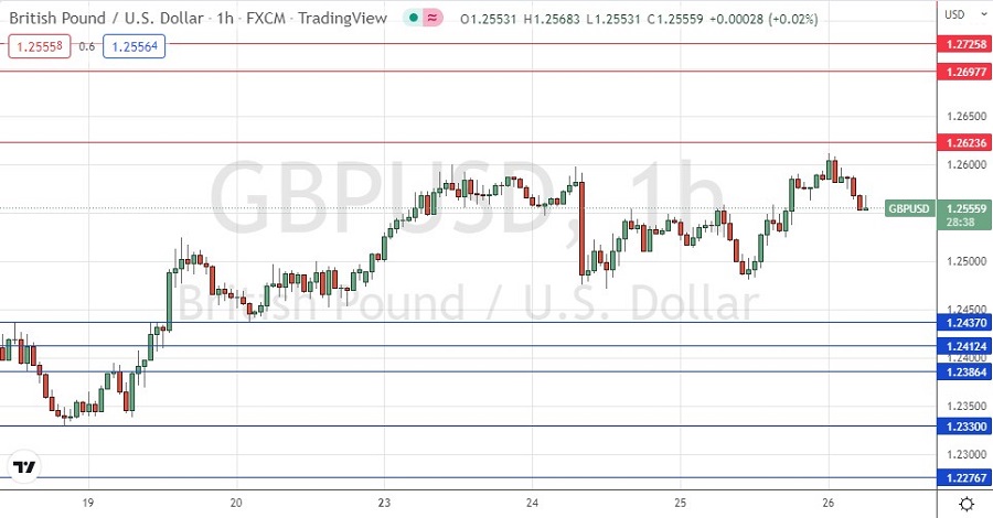- Entre en corto después de una inversión bajista (bearish) de la acción del precio en el marco temporal H1, tras el siguiente toque de $1.2624 o $1.2698.