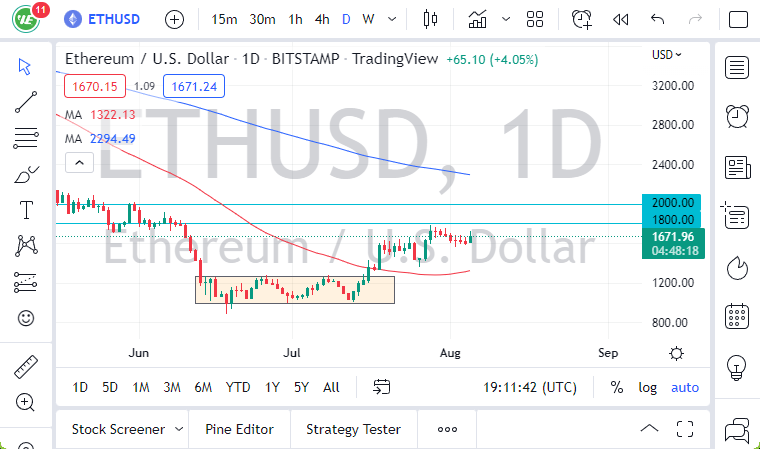 En el pronóstico del ETH/USD seguiremos viendo bastante ruido, pero estimo que tendremos muchas preguntas en lo que respecta al apetito por el riesgo. Hay que tener en cuenta que el apetito va a impulsar lo que ocurra en el mercado. Esto es lo mismo con todas las criptodivisas, que han estado tratando de construir una presencia, pero en este momento ha sido difícil conseguir un impulso en marcha. Siendo este el caso, se seguirá viendo mucho vaivén, y luego el impulso eventual.