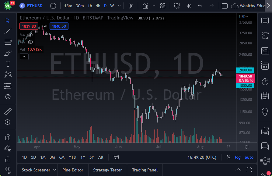 Vemos que los $2000 siguen ofreciendo una resistencia significativa, va a ser difícil superar ese nivel. Dicho esto, los $1800 son un área donde habíamos visto una cantidad importante de soporte, por lo que un poco de "memoria del mercado" está a punto de entrar en escena.