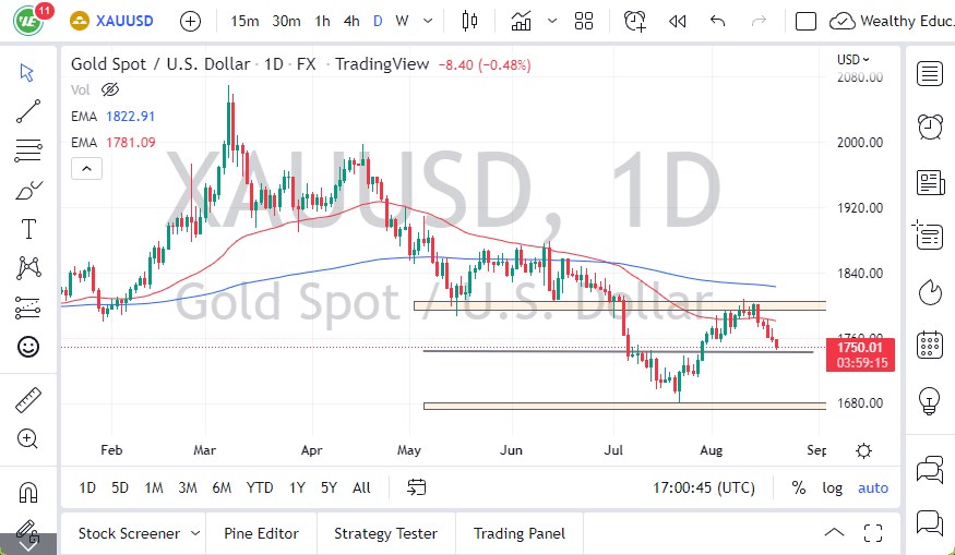Los mercados de Oro han caído aproximadamente ½% en la sesión del viernes, ya que estamos amenazando el nivel de $1750. Es posible que el sistema siga teniendo un comportamiento ruidoso, pero hay que prestar mucha atención a los rendimientos de los bonos en Estados Unidos y otras economías importantes, ya que el Oro es muy sensible a ello.