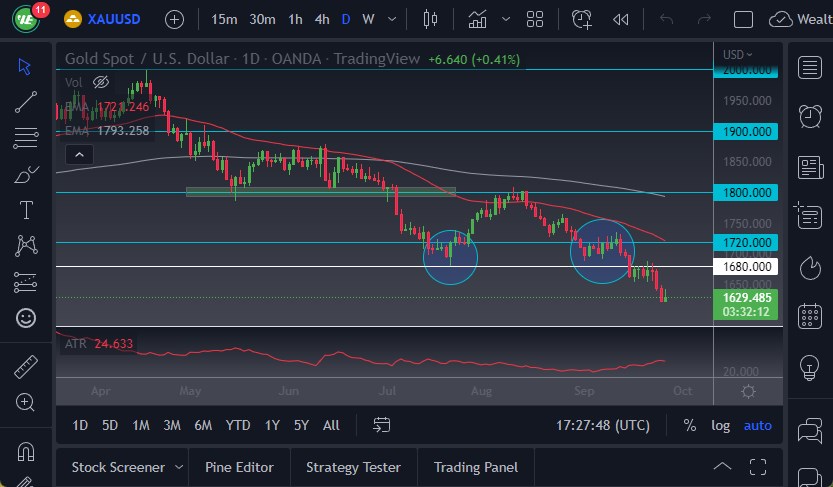 En este punto, es casi seguro que el nivel de $1600 se convertirá en un objetivo bastante rápido, después de eso miraríamos el de $1500. Conozca el precio del Oro para hoy.
