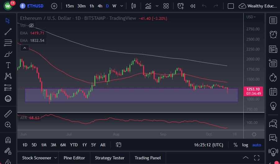 Si rompemos más alto desde aquí, la EMA de 50 días, que se sitúa por debajo del nivel de $1500, es un área que podría tener mucha resistencia. No creo que vaya a ser fácil incluso conseguir un movimiento alcista (bullish), pero si lo hacemos, es cuestión de tiempo antes de que los vendedores entren y abrumen todo, ya que el apetito por el riesgo simplemente no es lo suficientemente fuerte como para soportar los mercados de criptodivisas en este momento.