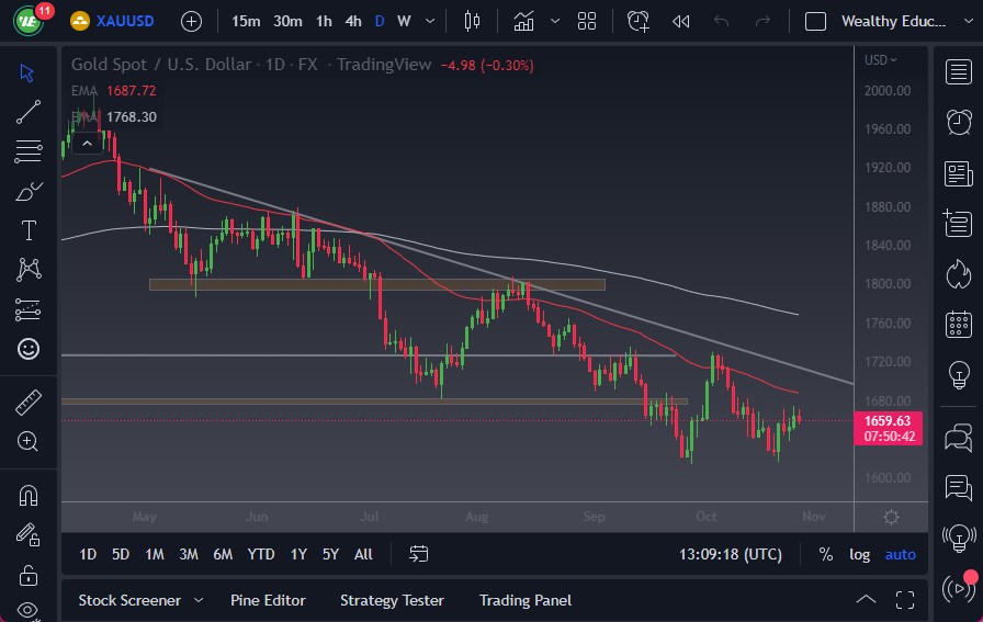 Si rompemos a la baja (breakdown) por debajo de la parte inferior de la vela para la sesión de trading, entonces creo que es posible que vayamos a probar el doble fondo justo por debajo. Romper a la baja (breakdown) por debajo de eso abre la posibilidad de un movimiento hacia abajo al nivel de $1600, y luego el nivel de $1500 después de eso, que por supuesto es psicológicamente importante y atraerá mucha atención en sí mismo. Consulta el precio del Oro hoy.