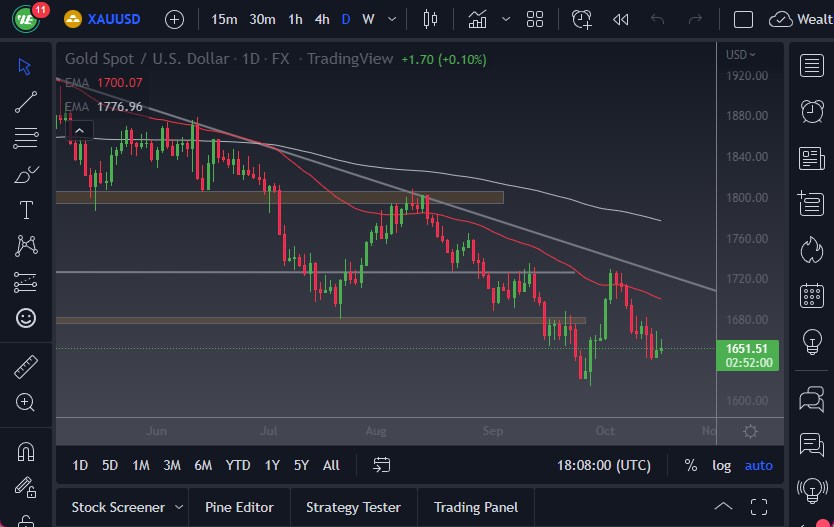 En este momento, parece que el mercado del Oro tiene más probabilidades de romper a la baja (breakdown) a través de la parte inferior del último par de velas, que está en aproximadamente $1645. Si pasamos por ahí, se abre un intento de volver a los mínimos recientes, y eventualmente hasta el nivel de $1600 donde sospecho que habrá una cierta cantidad de psicología adjunta, tal vez ofreciendo otro rebote. Comprueba la cotización del Oro hoy.