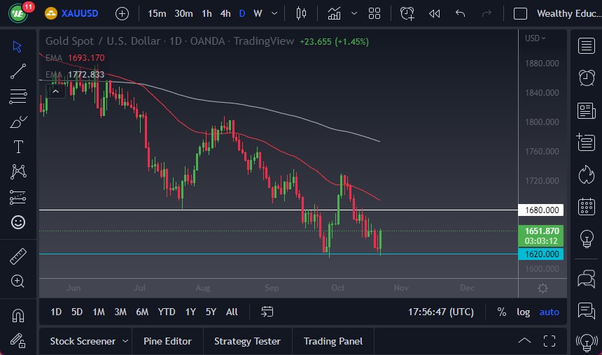 El mercado del Oro se desvió inicialmente hacia un nivel de soporte importante en forma de $1620, antes de dar la vuelta y mostrar señales de fortaleza. En este momento, el mercado sigue viendo un comportamiento muy ruidoso, y creo que tenemos una situación en la que estamos en una tendencia descendente, pero eso no significa necesariamente que vayamos directamente a la baja de inmediato. Creo que si se da el tiempo suficiente, se debería obtener una señal de agotamiento que se pueda aprovechar, pero la sesión del viernes fue un poco diferente a la mayoría.