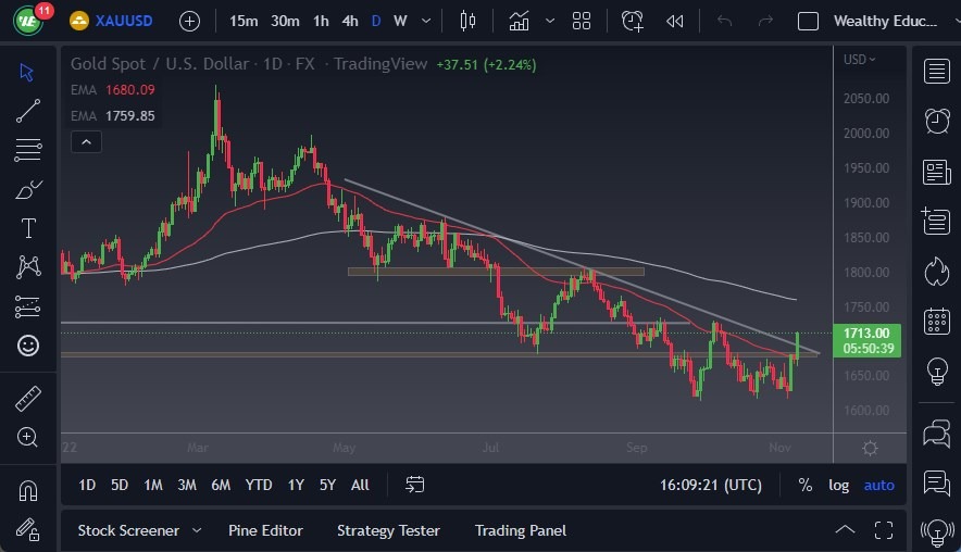 En el mundo del cripto se oye que la bolsa FTX está colapsando, lo que puede hacer que algunos traders corran a los mercados de Oro en busca de seguridad. En cualquier caso, esta es una situación en la que hay un movimiento ascendente masivo, aunque no hemos roto al alza (breakout) del todo una línea.