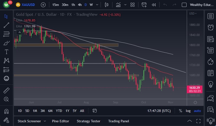 Además, el nivel de $1680 sigue siendo un área de resistencia, y vale la pena señalar que la EMA de 50 días se encuentra allí también. Siendo este el caso, será muy difícil romper al alza (breakout) por encima de ahí, por lo que el camino de menor resistencia sigue siendo más bajo. Eso no quiere decir que repentinamente vayamos a despegar descendentemente y a dominar de forma agresiva, pero aparentemente sigue siendo la prisión a través de la cual hay que mirar este mercado, tratando de encontrar oportunidades de venta.