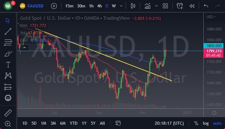 La EMA de 50 días tendría que romperse a la baja (breakdown) para que este mercado caiga mucho más, porque los indicadores a menudo se consideran como un nivel de soporte potencial para los traders a largo plazo.