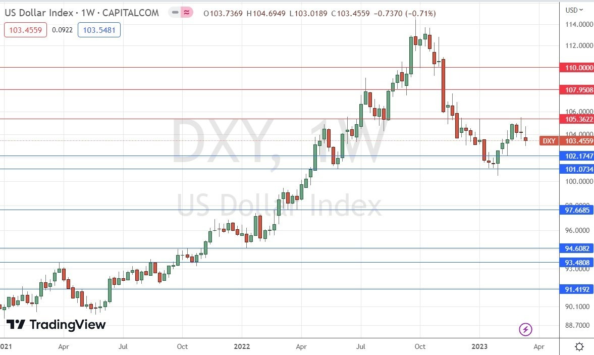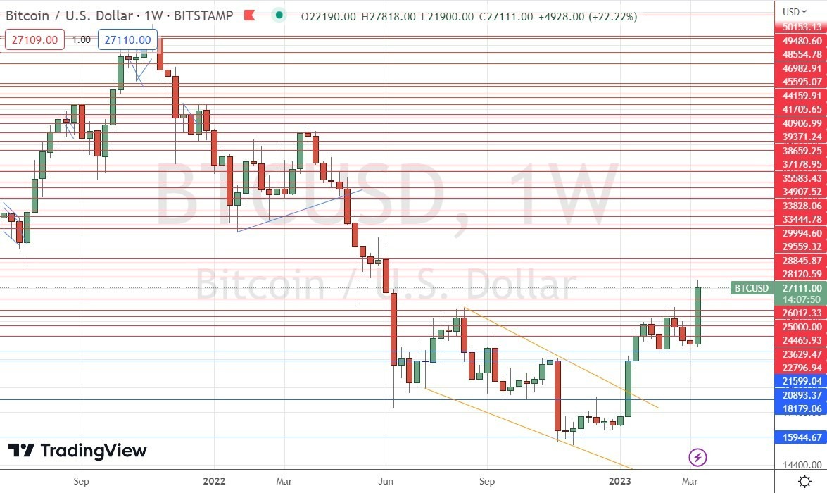 Es probable que el USD se enfrente a presiones contradictorias y a una gran volatilidad durante la semana que viene, debido al temor continuo al contagio de los bancos estadounidenses, pero también al enfriamiento de la economía estadounidense y a la decisión de la Reserva Federal sobre la subida de tasas que se anunciará el miércoles. Por el momento, lo más probable es que las operaciones contra el USD tengan éxito, pero los traders deberían seguir de cerca las noticias y tener cuidado con los eventos de volatilidad.