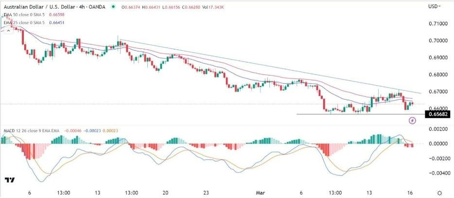La tasa de cambio AUD/USD apenas varió el jueves por la mañana tras las espectaculares cifras de empleo australianas. Cotizaba a 0.6628, unos puntos por encima del mínimo del miércoles de 0.6590. El par reaccionará a la actual crisis bancaria y a los datos económicos clave de Estados Unidos.