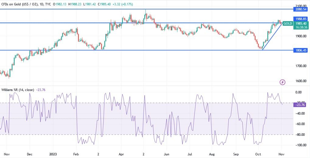 Actualmente, los precios mundiales siguen moviéndose dentro del "rango psicológico" de los $2.000. Este término se refiere al rango en el que el estado psicológico y el comportamiento humano tienden a influir en el trading más que otros factores. Sin embargo, algunos analistas afirman que las probabilidades de que el Oro supere el máximo histórico nominal alcanzado en agosto de 2020 siguen siendo elevadas, ya que los inversores esperan el resultado de las expectativas políticas de la Reserva Federal estadounidense.