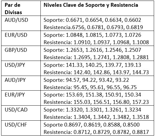 Niveles Clave de Soporte/Resistencia para Pares Populares