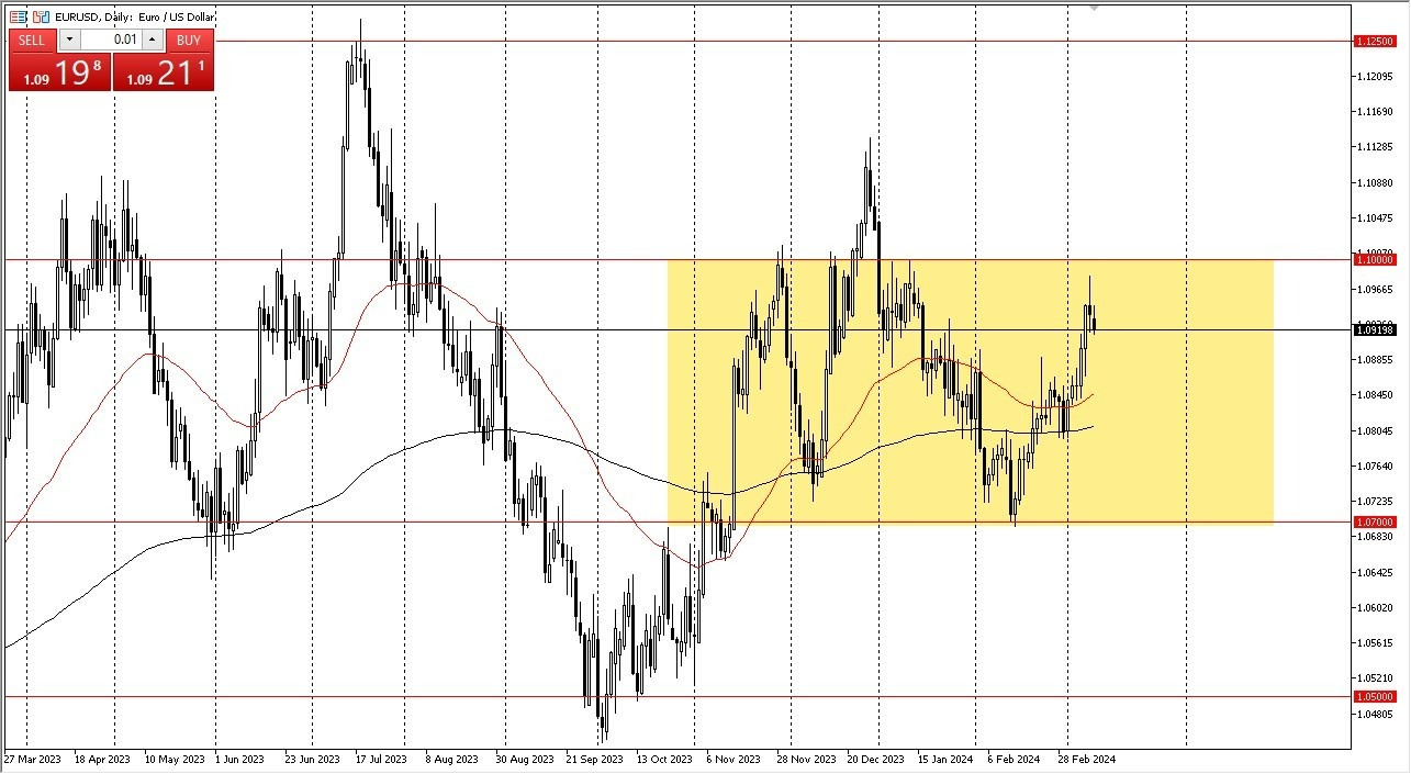Dado que es casi seguro que los europeos y los estadounidenses bajarán las tasas de interés este año, parece que la mayor parte del año se desarrollará en este rango. El resultado será que dos bancos centrales volverán a correr hacia el fondo. Dicho esto, si vemos un cierre diario por encima de la marca de 1.10, considero que tiene sentido comprar en lugar de desvanecerse en los repuntes (rally) en esta zona general. No obstante, es la menos deseable de las dos opciones. En vista de ello, tengo sentimientos encontrados sobre este par y un ligero prejuicio contra ellos. Conoce la tasa de cambio del EUR/USD hoy.