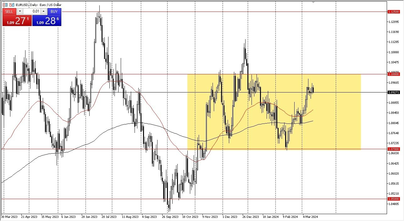- Durante la sesión de trading del par EUR/USD, el Euro sigue muy ajustado y se encuentra en un área de consolidación que parece bastante estricta.