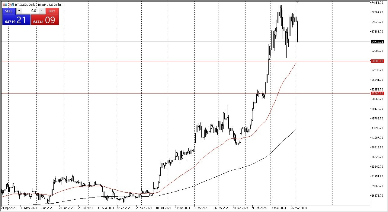 Así que todos los que habían estado esperando con ansia aprovecharon la oportunidad que tenían y ahora tenemos que digerir esa toma de ganancias. Tal y como están las cosas ahora mismo, pienso que el nivel de $60.000 USD por debajo es un nivel de soporte, especialmente porque la EMA de 50 días también se encuentra justo ahí. Al alza, creo que el nivel de $75.000 USD es un nivel de resistencia importante, por lo que, si pudiéramos superarla, obviamente sería una señal muy alcista (bullish), pero no considero que lo hagamos, al menos no a corto plazo.