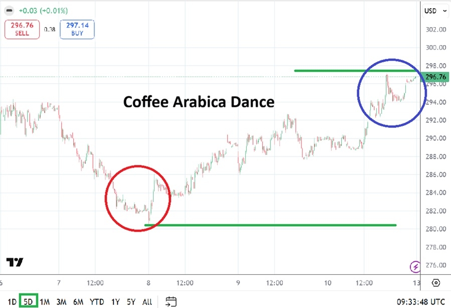 Quizás lo que está a punto de leer sea erróneo y resulte ser una narrativa falsa. Sin embargo, el precio del café arábica se movió de una manera extrañamente correlacionada con el precio del petróleo crudo WTI la semana pasada. El precio del café arábica cerró cerca del valor de 296,76. El martes, cuando se anunció el alto el fuego en Irán, el precio del café arábica cayó a un mínimo de casi 280,00 USD. Algunos de los que lean esto pueden considerar errónea esta correlación, y no puedo culparlos por ello.