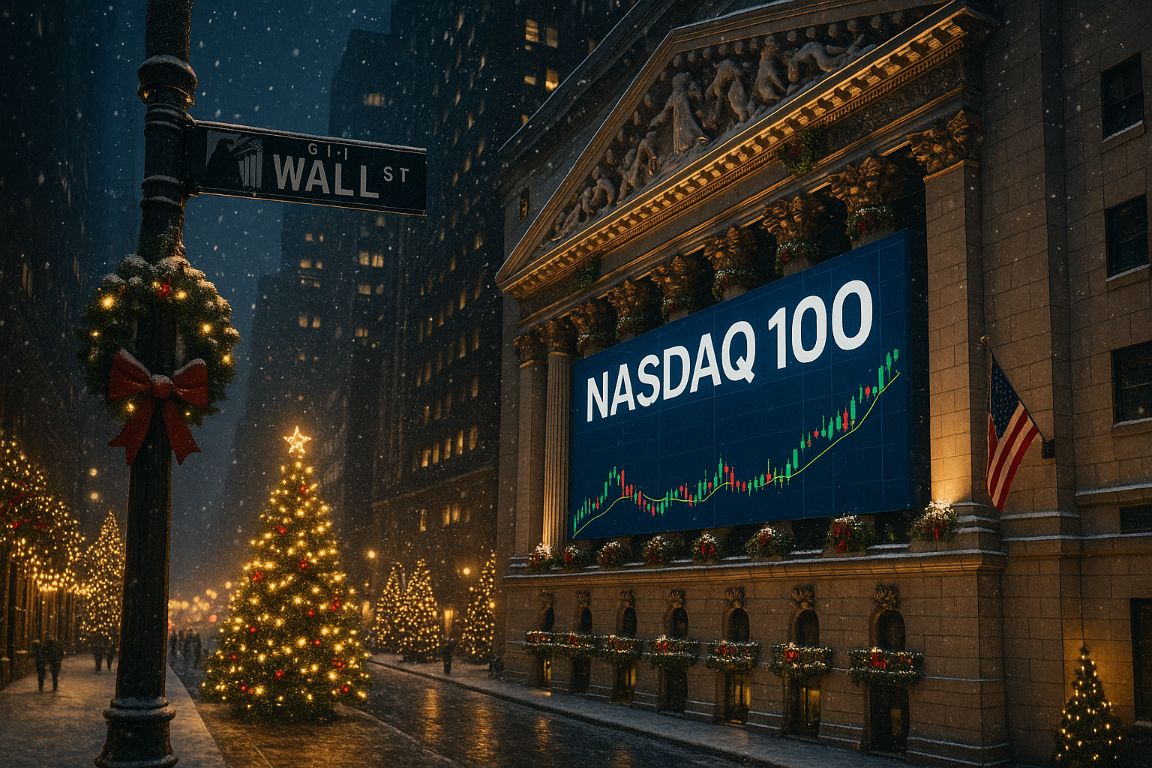 Análisis del NASDAQ 100 para diciembre 2025: soporte en 23.250, resistencia en 25.000 y posibles movimientos de rally de Santa Claus.